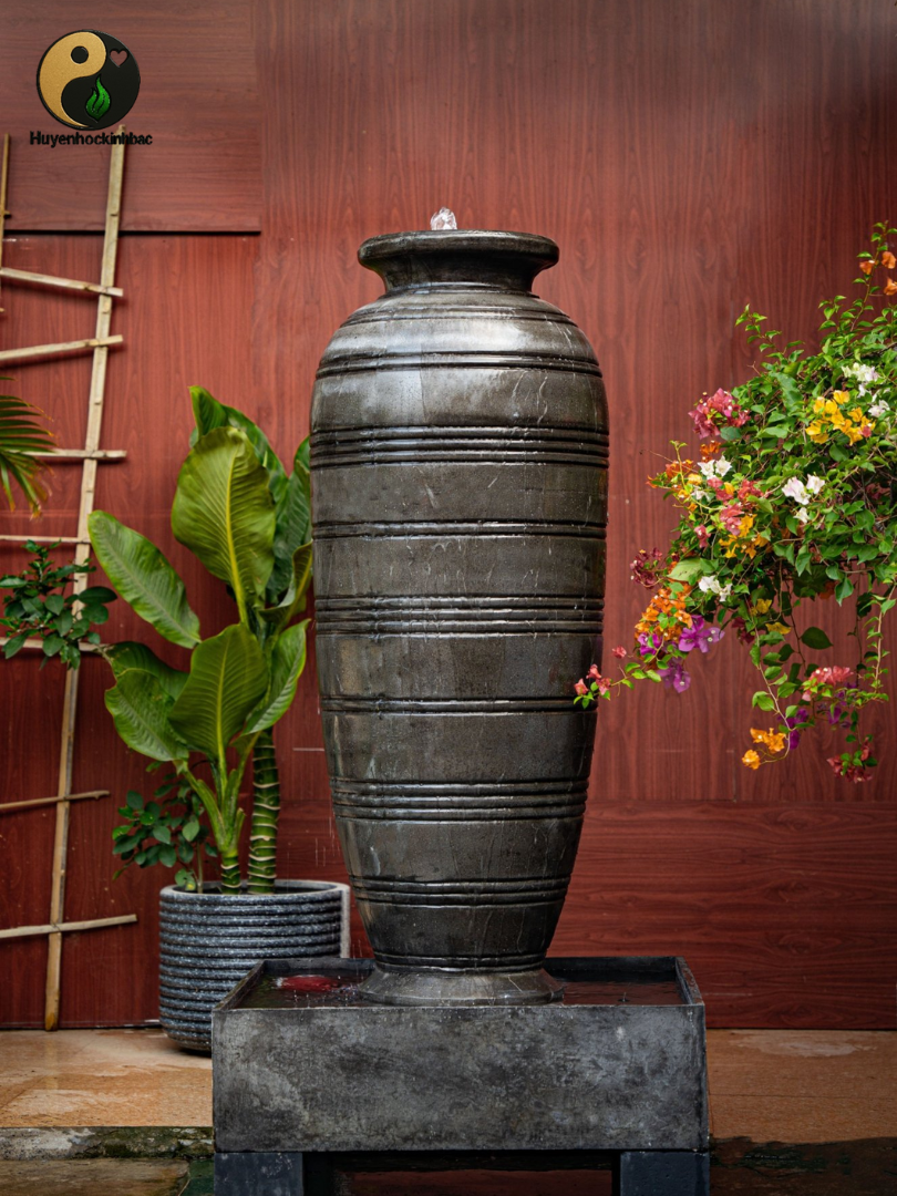 | Hình dáng | Thân phình – miệng nhỏ – đế rộng – cao 108cm | Thổ hình – Tàng Thủy | Tụ tài – giữ khí – đúng nguyên lý phong thủy “tụ thủy sinh tài” |