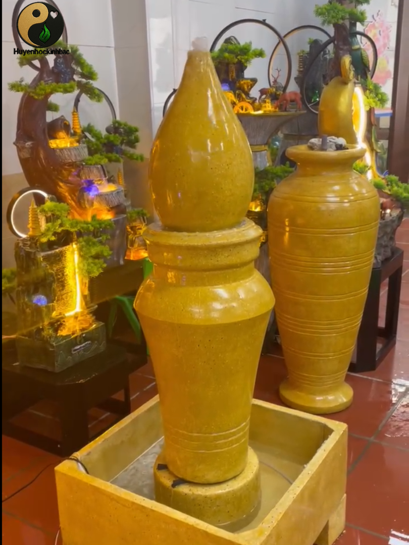 | Phụ kiện đi kèm | - Hướng dẫn sử dụng chi tiết - Tờ trú kích hoạt tụ linh - 2 nụ trầm xông khí vị trí đặt - Bản đồ phong thủy vị trí đặt trong nhà - Tỷ lệ phối đá giải dưới chậu theo khí mệnh - Hạt sứ & đá thạch anh (thô + mài bóng) theo Dụng Thần - 1 T xoáy – van xả nước Tặng kèm: 01 vòi dù – 03 kg thạch anh vụn – đèn LED cho mỗi bình |