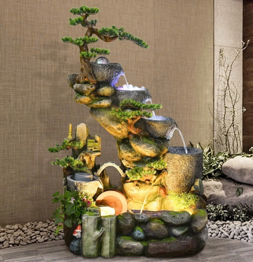 Đài phun nước xếp tầng phong thủy may mắn tài lộc thăng tiến trang trí làm đẹp ban công phòng khách văn phòng biệt thự khách sạn tinh tế đẳng cấp