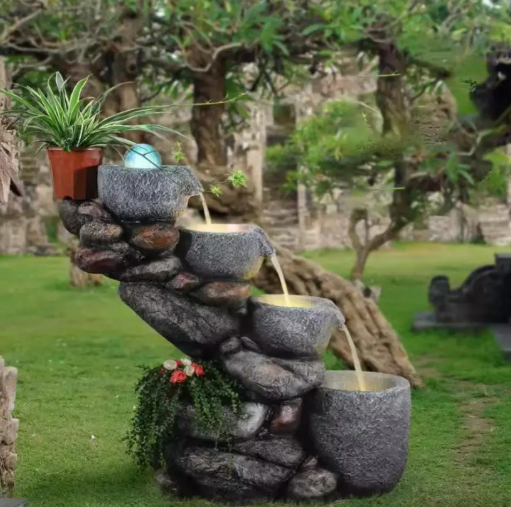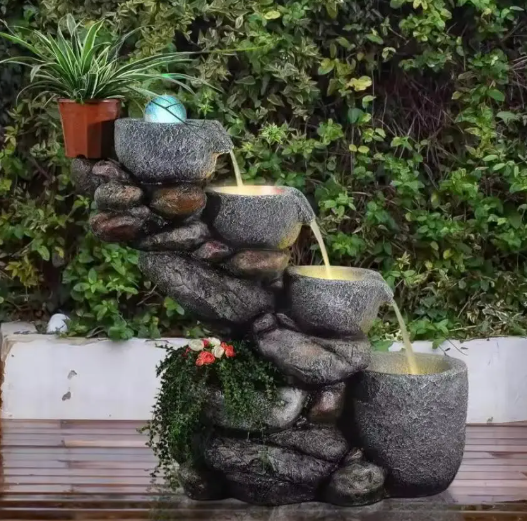 Đài phun nước xếp tầng phong thủy may mắn tài lộc thăng tiến trang trí làm đẹp ban công phòng khách văn phòng biệt thự khách sạn tinh tế đẳng cấp
