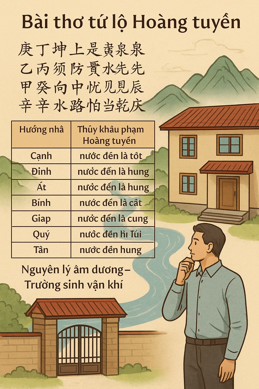 Âm sinh thì dương tử – Âm thịnh thì Dương suy → Thủy đến sai phương là đại họa. Đây là cơ sở tạo ra nguyên tắc Hoàng Tuyền.