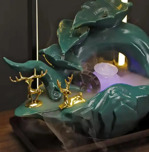 Trong sự hài hòa của sắp đặt thác nước phong thủy thường đốt cùng nụ trầm cháy khoảng 15-20p, hương của trầm giúp xua đuổi uế khí tăng thêm vượng khí, làn khói trầm bồng bềnh với mùi hương dễ chịu giúp con người nơi không gian nơi bạn đặt có được sự hưng phấn cao nhất, cảm xúc cũng như cảm hứng tốt nhất trong công việc, và có một sự thật những điều tốt đẹp sẽ luôn được thu hút bởi một nguồn năng lượng đẹp