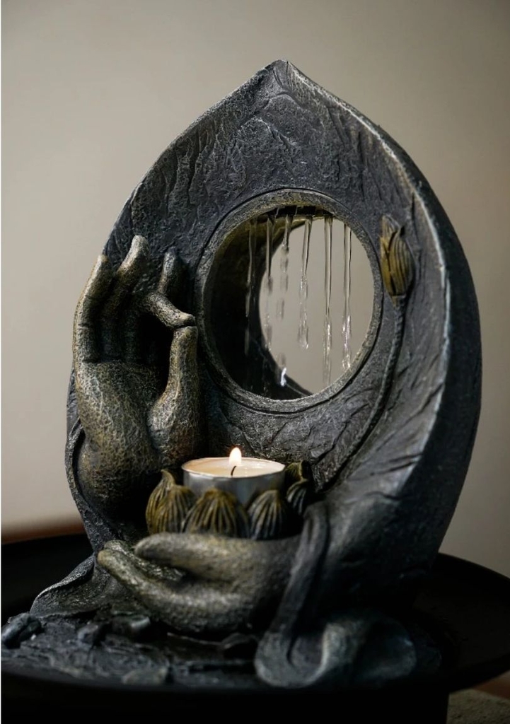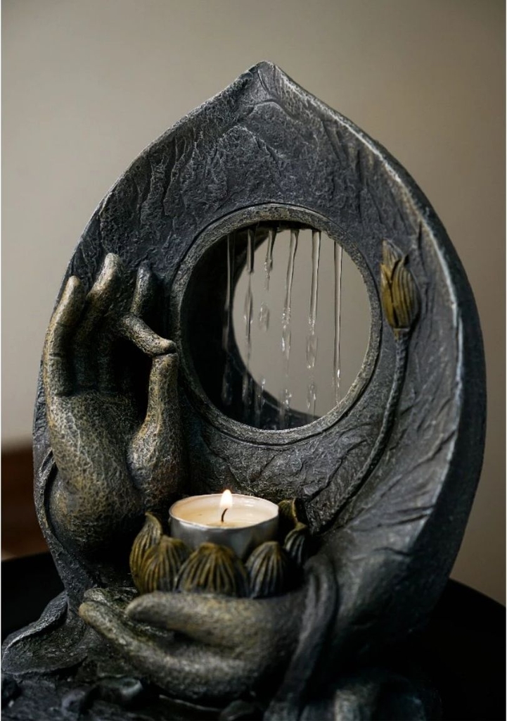Thác Nước Phong Thủy Mini Để Bàn TNMKB09 – Hoa Sen & Bàn Tay Thiền Định Thanh Tịnh