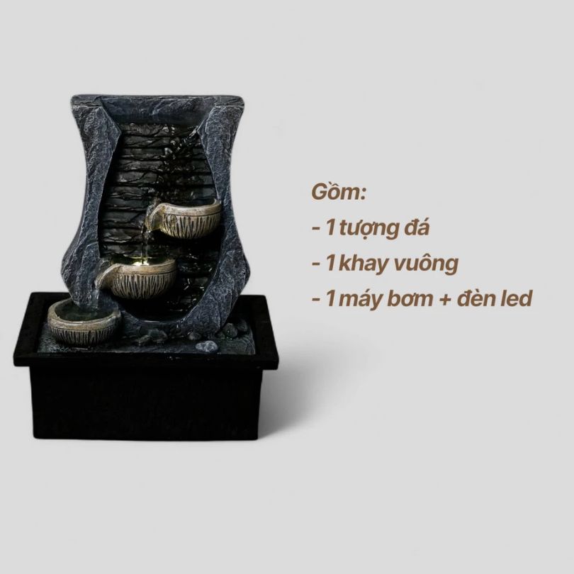 Trong phong thủy, nước tượng trưng cho tài lộc, sự thịnh vượng và may mắn. Khi kết hợp cùng nghệ thuật điêu khắc, ánh sáng và cây xanh, sản phẩm không chỉ mang lại giá trị phong thủy, mà còn là tác phẩm trang trí tinh tế cho không gian sống và làm việc.