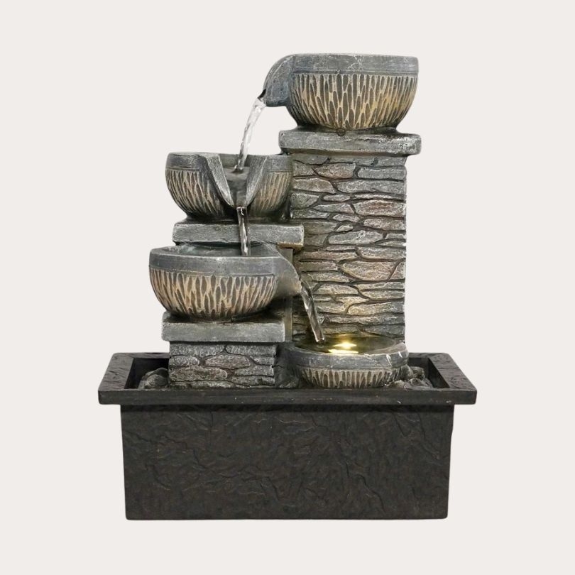 Mẫu TNMKB08 nổi bật với thiết kế bậc thang đá tự nhiên, dòng nước róc rách chảy qua từng tầng, tạo hiệu ứng âm thanh êm dịu và cảm giác gần gũi thiên nhiên. Kích thước nhỏ gọn, phù hợp đặt trên bàn làm việc, quầy lễ tân hay kệ phòng khách mà không chiếm nhiều diện tích.