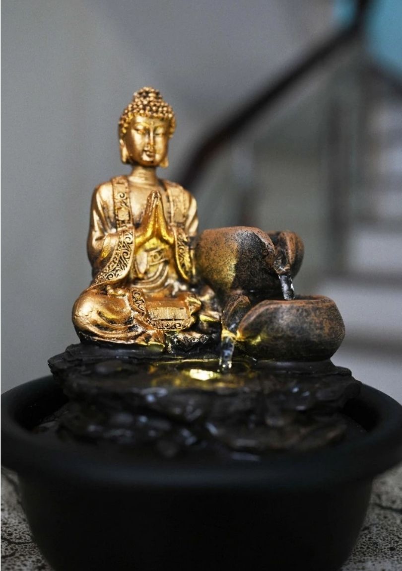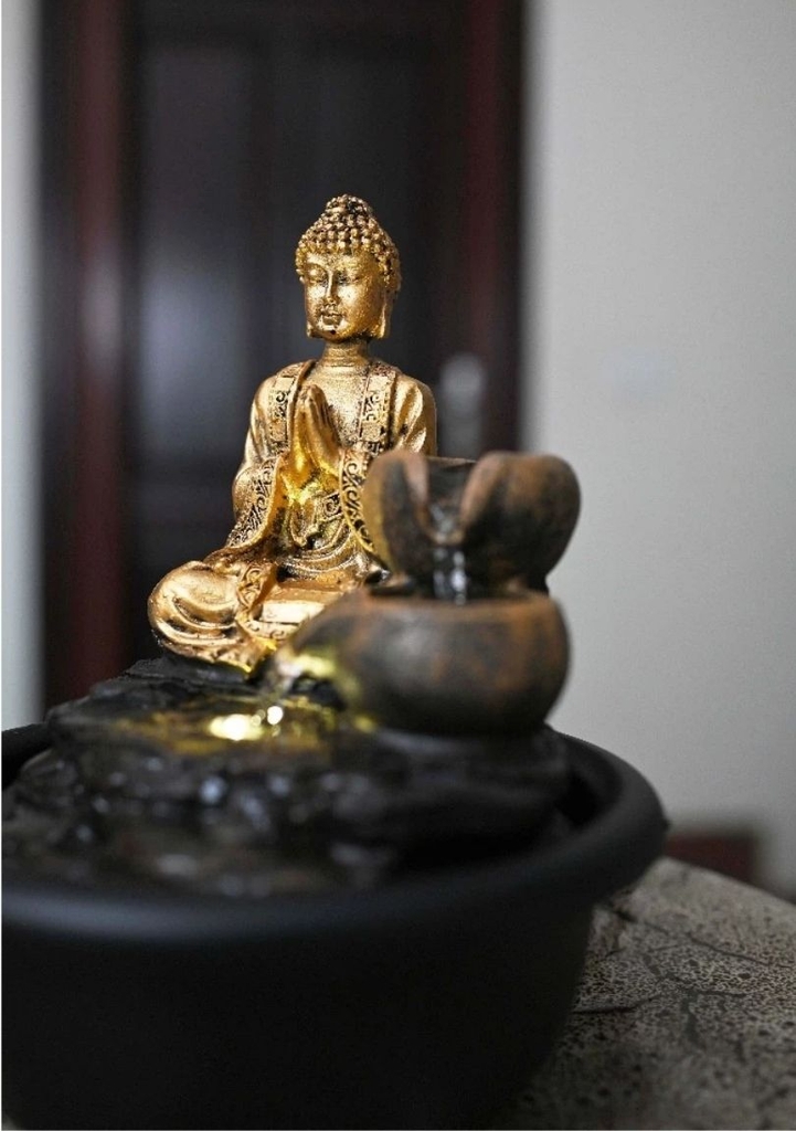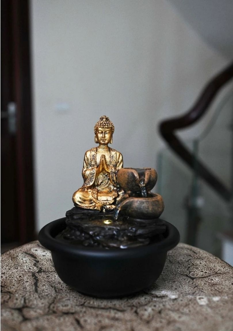 Thác Nước Phong Thủy Mini TNMKB12 – Tượng Phật An Nhiên, Chiêu Tài Hút Lộc