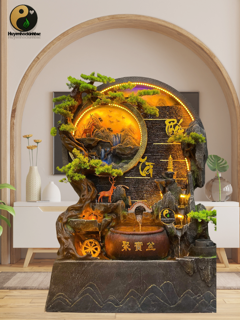 Thác nước tuần hoàn tạo âm thanh róc rách êm dịu, giúp xua tan căng thẳng, thanh lọc không khí và thúc đẩy năng lượng dương.