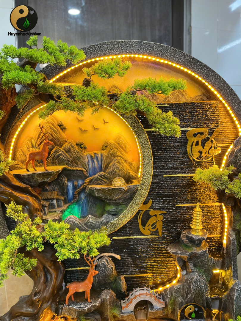 Thác Nước Phong Thủy Sơn Thủy – KBPTTN003 là sự kết hợp hoàn hảo giữa nghệ thuật điêu khắc tinh xảo và yếu tố phong thủy truyền thống. Với bố cục non xanh – nước biếc – hươu vàng – tùng cổ thụ, sản phẩm tạo nên một khung cảnh "sơn thuỷ hữu tình", mang lại cảm giác thư thái và tràn đầy năng lượng tích cực cho không gian sống hoặc nơi kinh doanh.