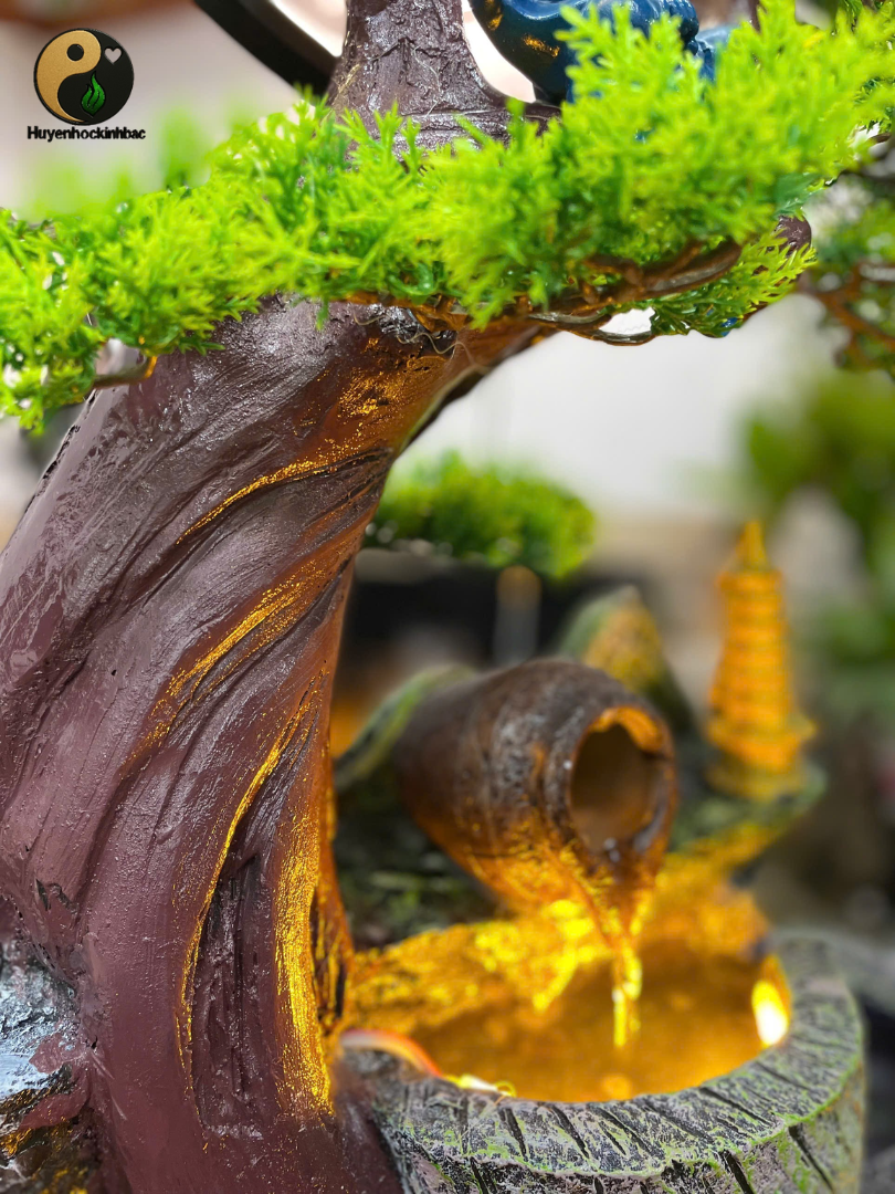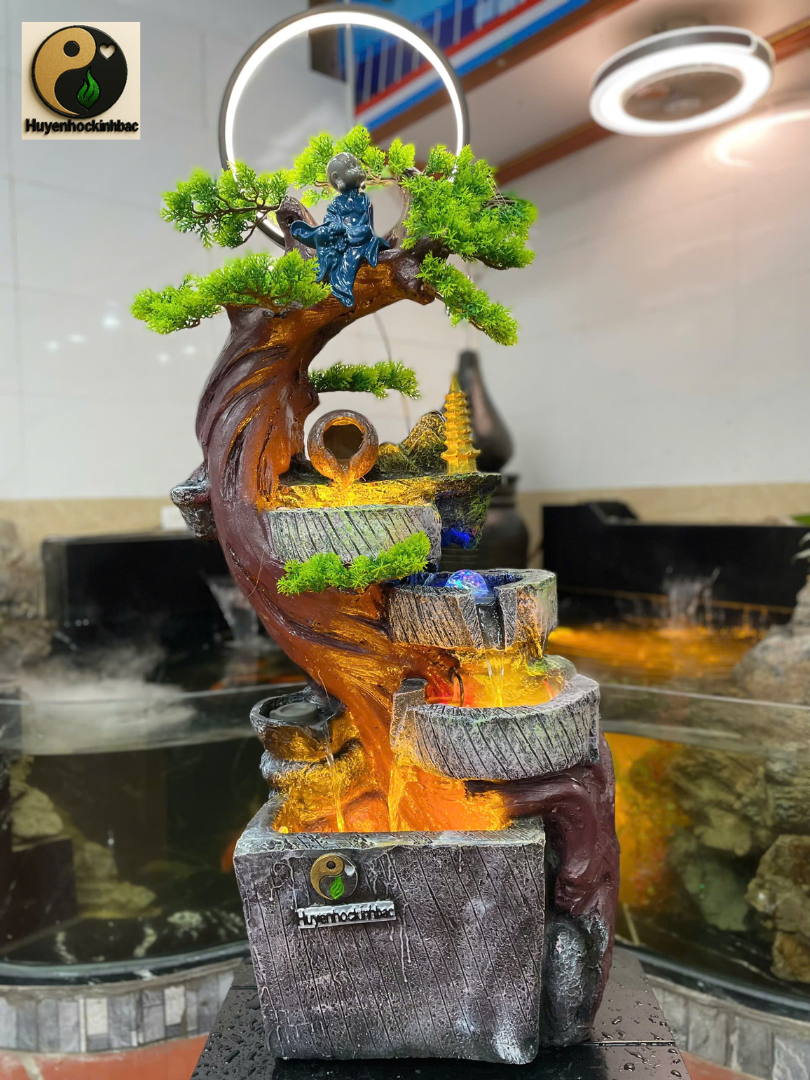 Thác nước phong thủy là sự kết hợp hài hòa giữa yếu tố nước chảy liên tục và thiết kế mang tính biểu tượng phong thủy: cây bonsai, lu nước, Phật Di Lặc,… tạo nên dòng chảy luân hồi, tượng trưng cho tài lộc dồi dào, vận khí hanh thông.