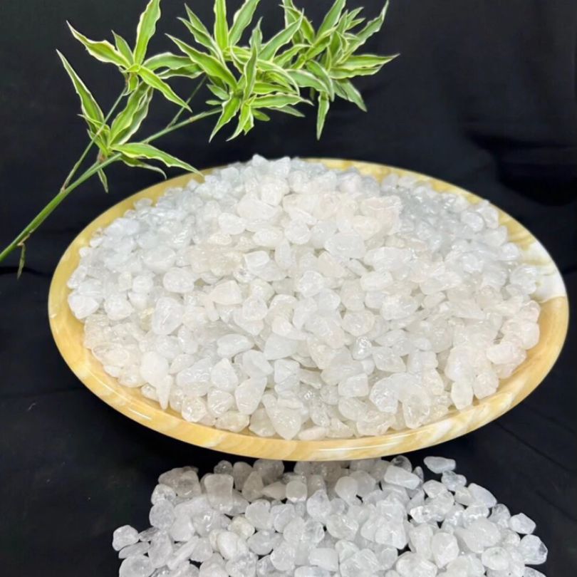 Bột đá thạch anh phủ nhũ khoáng giả đá + thạch anh vụn trong lòng bình |