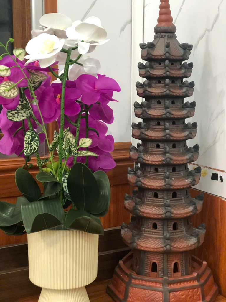 Từ hàng trăm năm qua, tháp Văn Xương luôn được coi là pháp khí mạnh mẽ cho học hành và sự nghiệp. Mẫu TVXKB02 nổi bật với phối màu đỏ – đen quyền lực, tượng trưng cho sự bền bỉ, trí tuệ và ý chí vươn lên. Thiết kế 9 tầng uy nghi, biểu trưng cho đỉnh cao tri thức và sự thăng hoa danh vọng, mang đến nguồn năng lượng giúp gia chủ kiên định theo đuổi mục tiêu học tập và con đường thăng tiến.