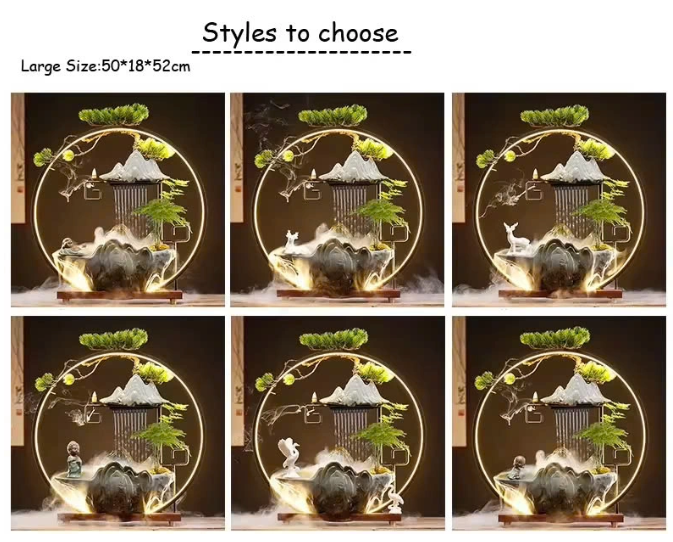 Hoa sen gốm sứ tinh tế, mềm mại, có thể đốt trầm hương, tỏa hương thơm thanh tao, xua tan tà khí, mang đến may mắn. Thác nước kết hợp phong thủy và nghệ thuật, mang đến vẻ đẹp độc đáo và năng lượng tích cực cho không gian.