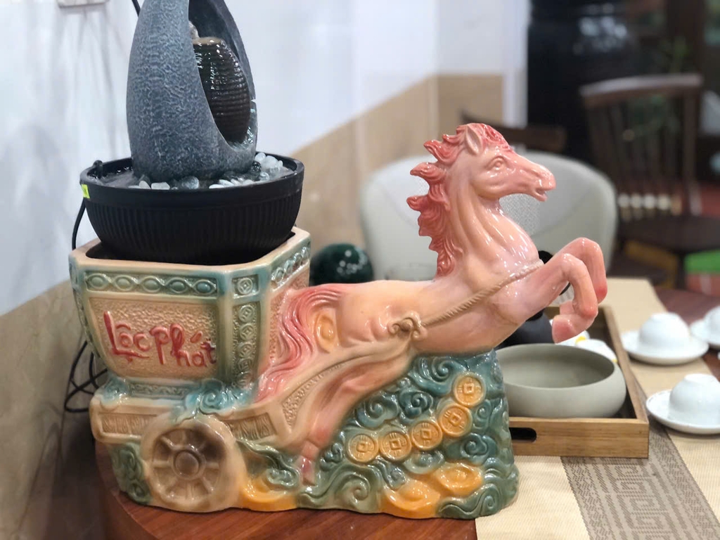 Từ lâu, ngựa đã là biểu tượng của tốc độ, sự trung thành và sức bền, thường xuất hiện trong các câu chúc “Mã Đáo Thành Công” – ngụ ý mong muốn công việc thuận lợi, làm ăn phát đạt, mọi sự hanh thông. Khi kết hợp với hình ảnh cỗ xe chở tài lộc, bức tượng càng mang giá trị phong thủy sâu sắc, giúp gia chủ thu hút tiền tài, danh vọng và sự thăng tiến trong công việc.