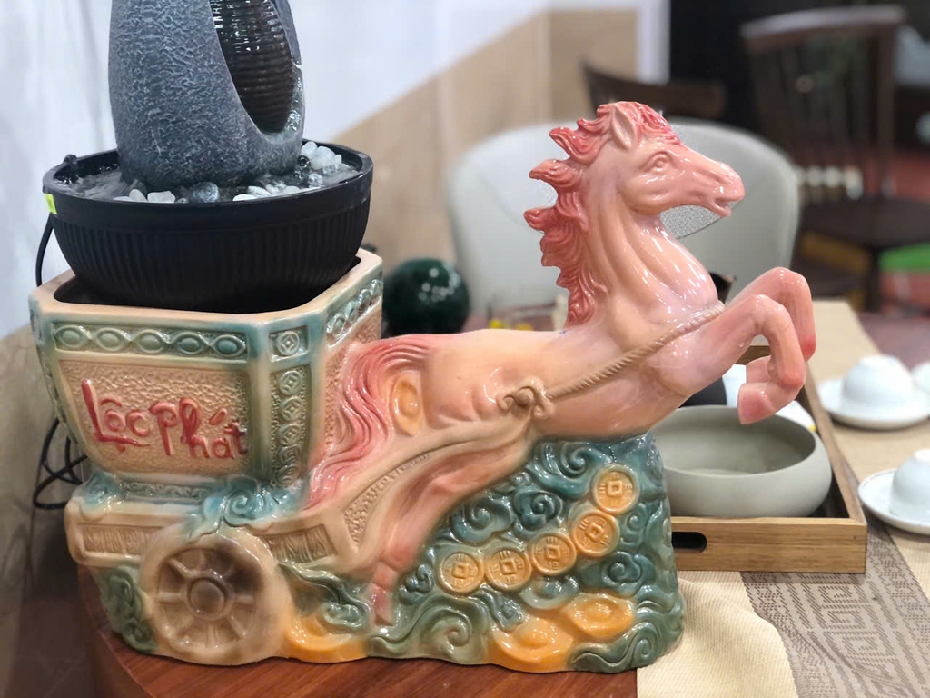 Tượng Ngựa Kéo Tài Lộc NKTLKB01 là một tác phẩm gốm Bát Tràng cao cấp được chế tác hoàn toàn thủ công, kết tinh từ bàn tay khéo léo và tâm huyết của những nghệ nhân làng nghề truyền thống. Sản phẩm mang hình tượng chú ngựa mạnh mẽ vươn cao hai chân trước, kéo theo cỗ xe chở đầy tài lộc, tượng trưng cho sự kiên cường, bền bỉ và thành công bứt phá.